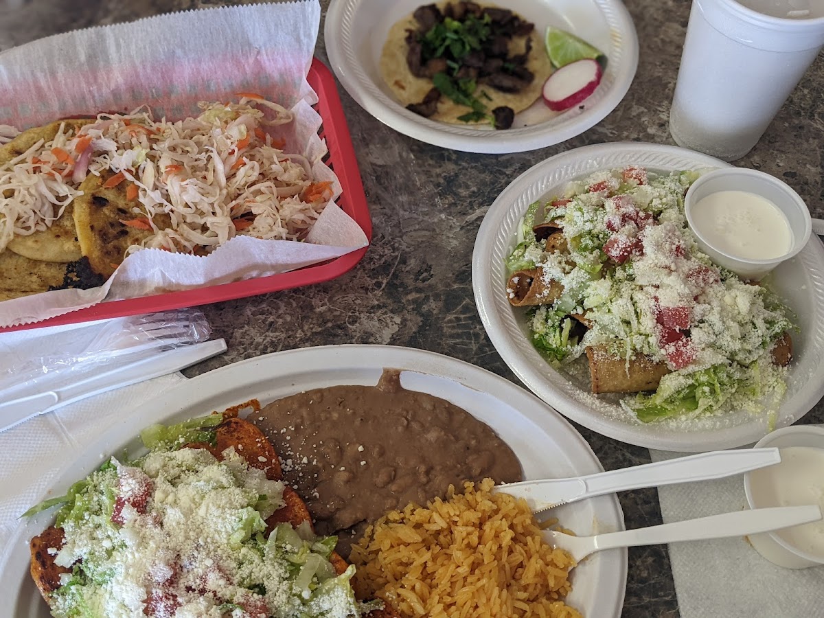 First I want to say how helpful the owner was explaining the different dishes to me since I dont know a whole lot about El Salvadoran food. Secondly, I want to say that the sauce that came with the Pupusas might be the tastiest sauce I have ever had at any restaurant. I have no idea what it was except I guess it may be carrot based. It was not hot at all but holy moly it was EXQUISITE. I truly could drink it. I got the Pupusas mixed on the owners suggestion and I went with the three that he recommended (pork, bean and cheese). I have had Pupusas before and I thought they were ok but these were just amazing! They came with this vinegary type slaw that I really liked but it is heavy on the vinegar. My dining partner got the cheese quesadillas. She gave me a bite and they were good. But the rice and the beans were the real stars. The rice was fluffy and full of flavor and the refried beans were just plain good (not heavy and oily like some spots). I got the order to go and the owner told me it would take about 15 minutes because they make everything to order. I will be back to try some of the other dishes that I am not familiar with.